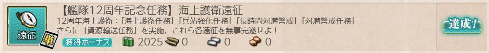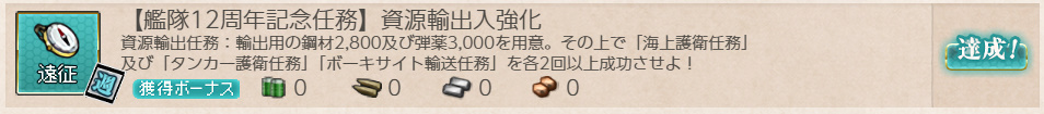 艦これ 任務「【艦隊12周年記念任務】 資源輸出入強化」【遠征/期間限定/ウィークリー】