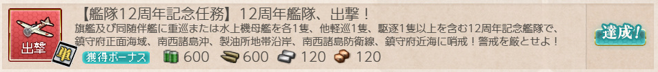 艦これ 任務「【艦隊12周年記念任務】12周年艦隊、出撃!」【期間限定/出撃/単発】1-1,1-2,1-3,1-4,1-5