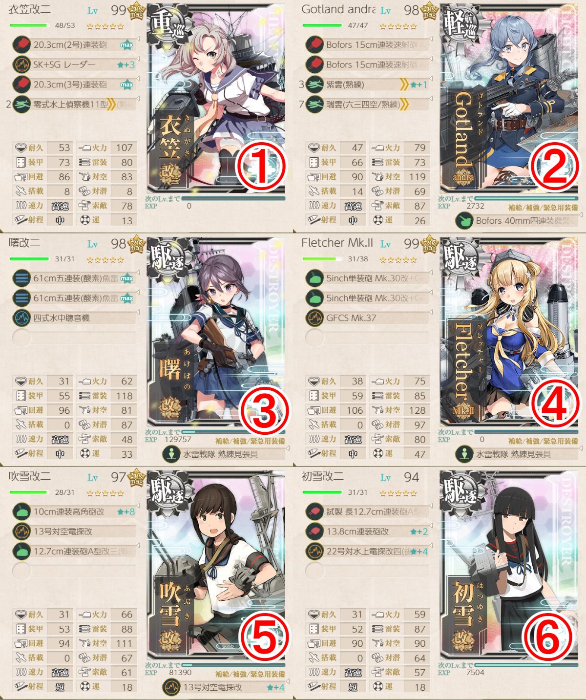 吹雪、曙、朧、翔鶴、大和、モガドール、ゴトランド、衣笠改二、フレッチャー改Mod.2/Mk.Ⅱのうち2隻以上を編成し
