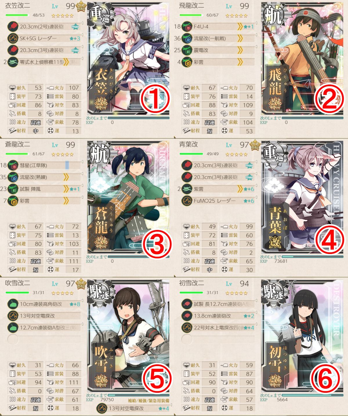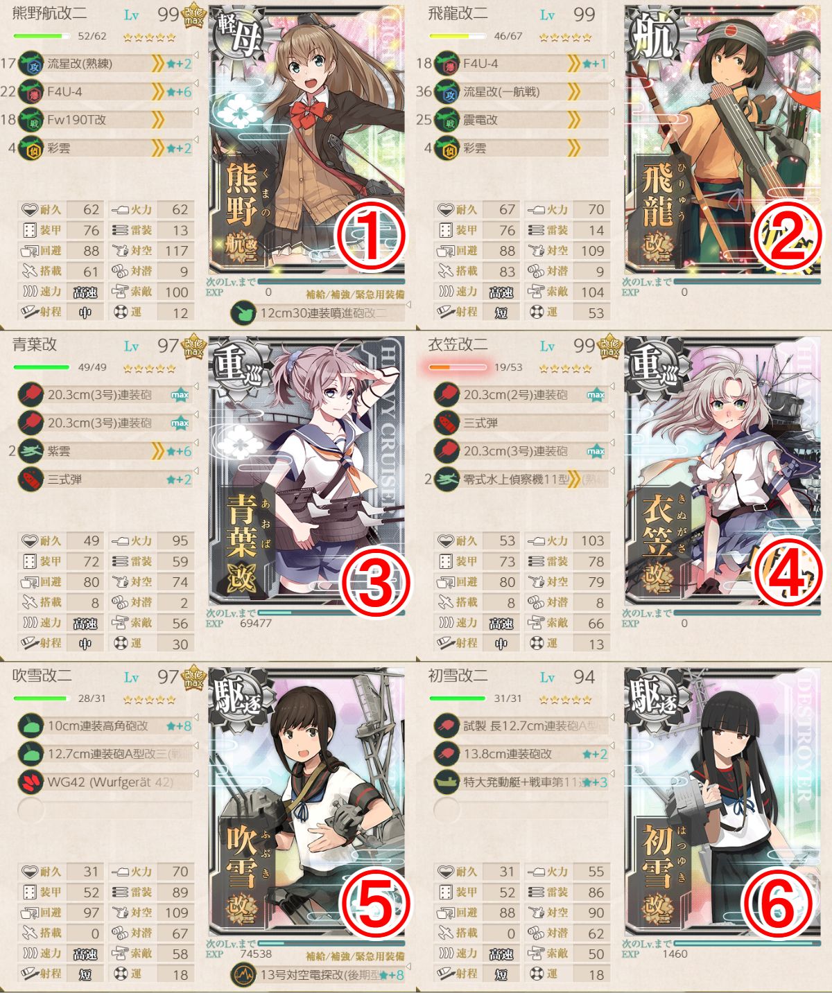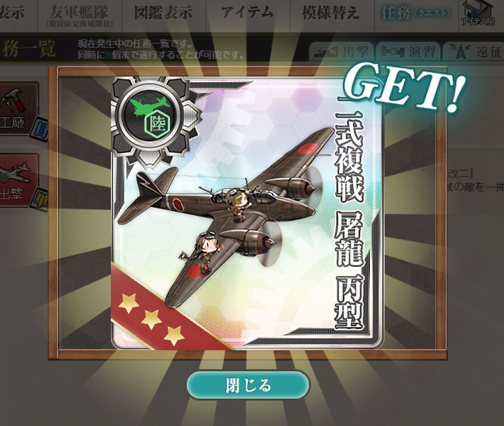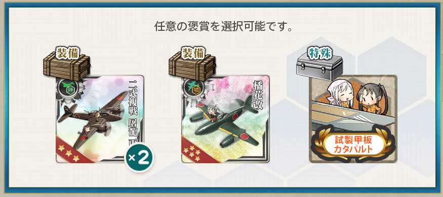 - 二式複戦 屠龍 丙型×2 or 橘花改×1 or 試製甲板カタパルト×1
