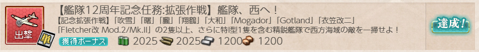 艦これ 任務「【艦隊12周年記念任務】艦隊、西へ!」【期間限定/出撃/単発】4-1,4-2,4-3,4-4,4-5