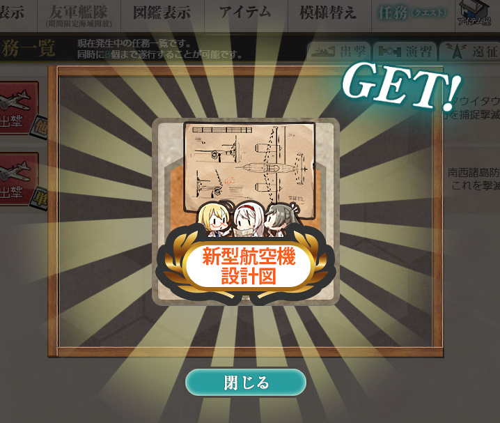 - 新型航空兵装資材×4 or 試製甲板カタパルト or 新型航空機設計図