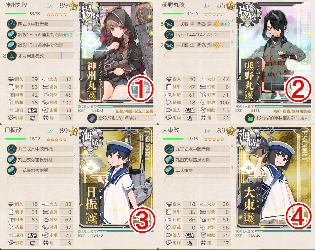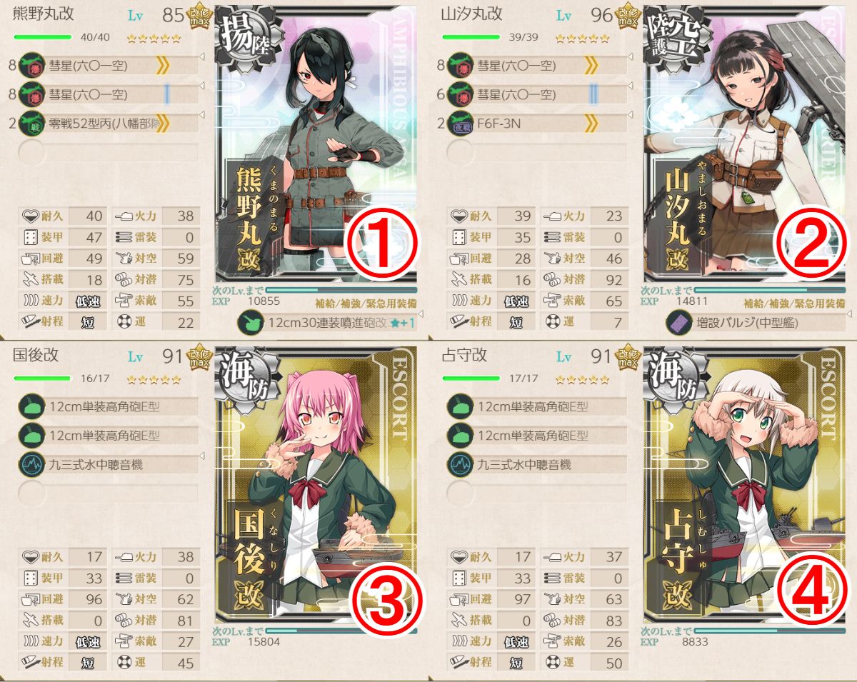 揚陸艦1補給艦1海防艦2の通常艦隊編成です
