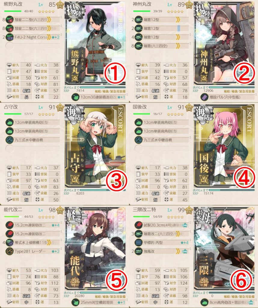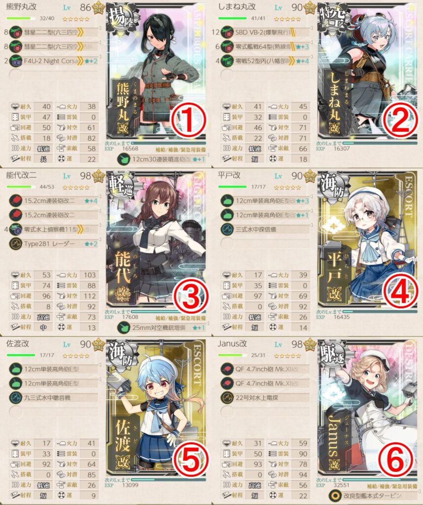 揚陸艦1補給艦1軽巡1駆逐1海防艦2の通常艦隊編成です