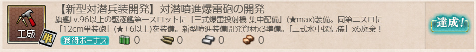 - 改修資材×22 or 試製15cm9連装対潜噴進法 or 海外艦最新技術×3