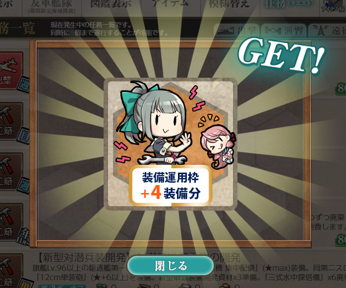 装備運用枠と一応対潜噴進法をいただきました