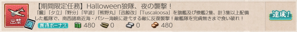 【艦これ】「【期間限定任務】Halloween狼隊、夜の襲撃!」【期間限定/出撃/単発】2-1,2-2