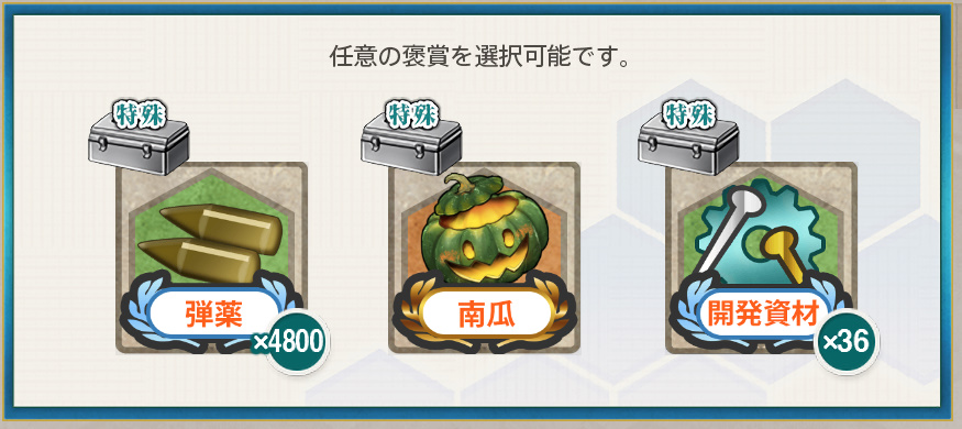 - 弾薬×4800 or 南瓜×1 or 開発資材×36