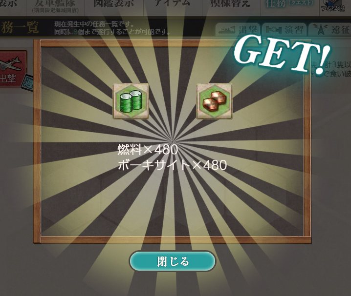 - 燃料×480、弾薬×0、鋼材×0、ボーキサイト×480