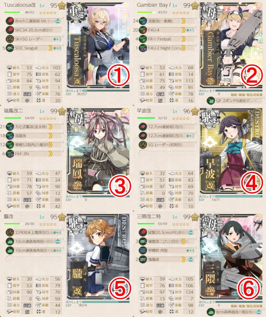 朧、夕立、野分、早波、熊野丸、迅鯨改、タスカルーサのうち3隻を含み、