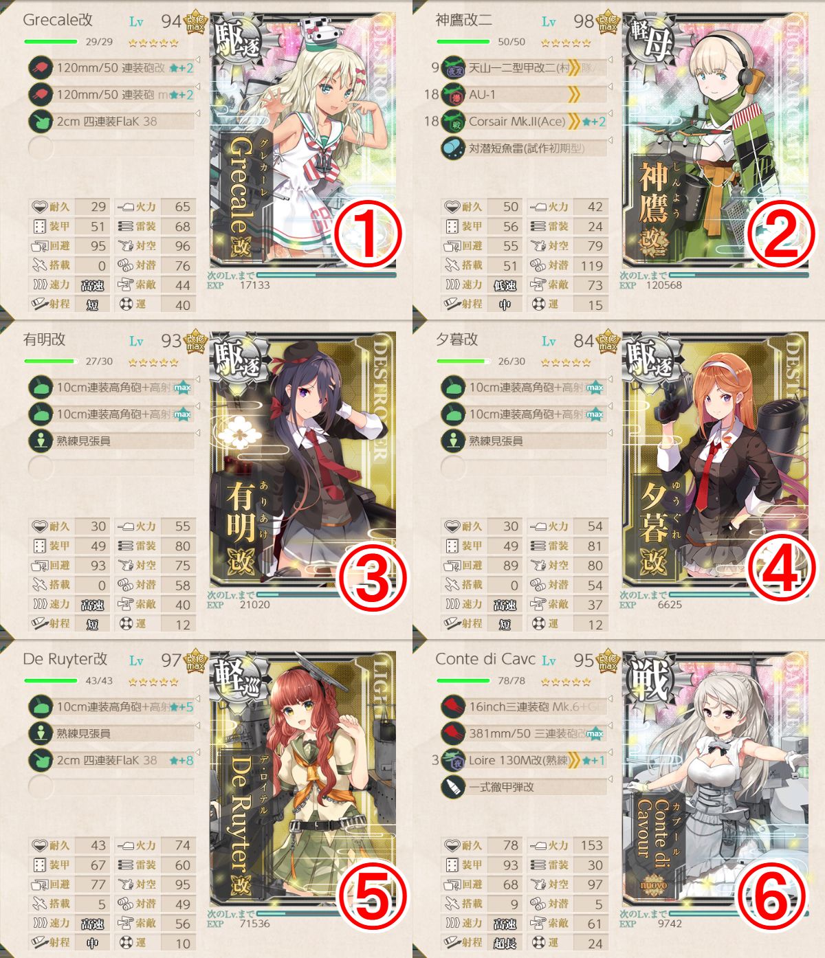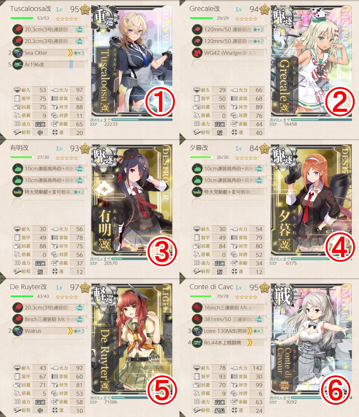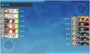 ボスの対策として、運が高めで魚雷カットインをやらせやすいグレカーレさんを優先して採用しています