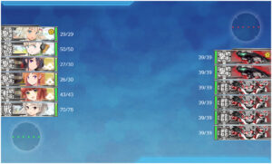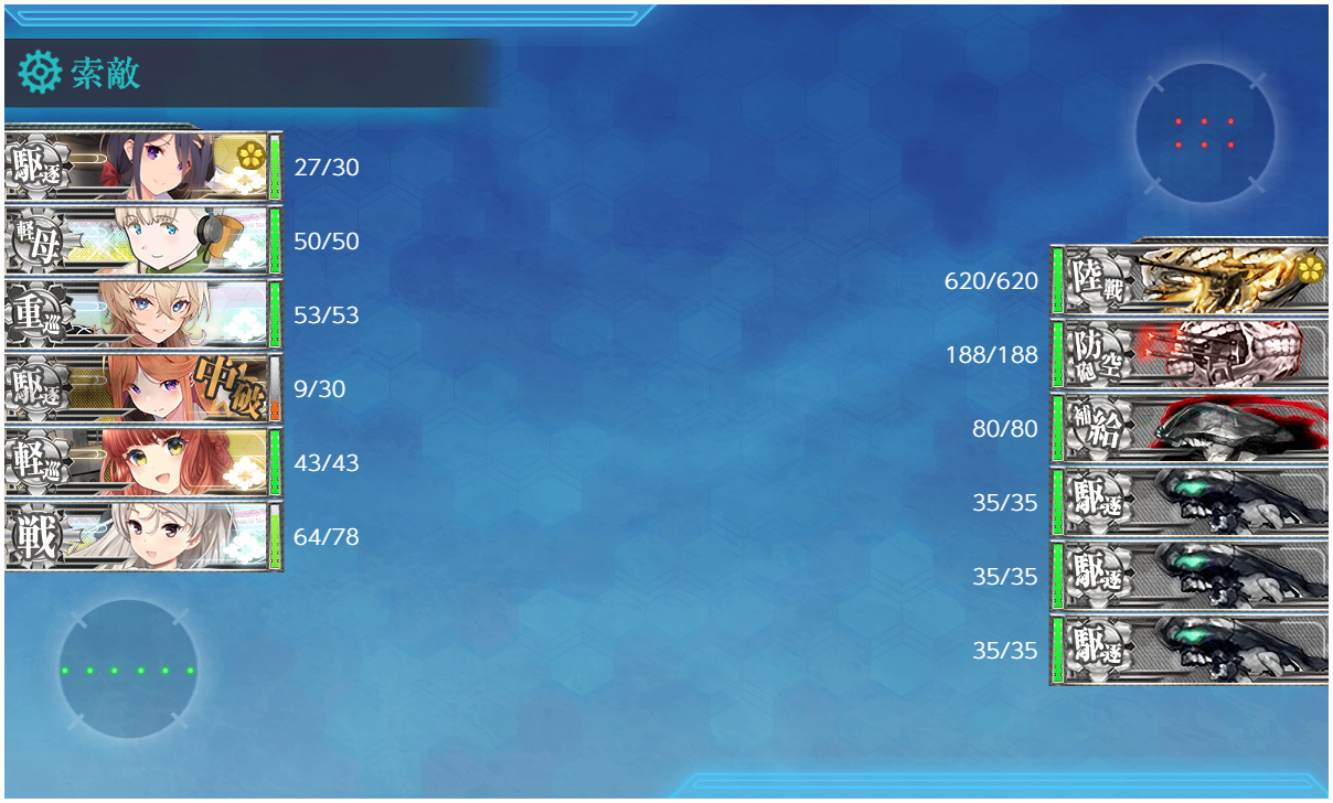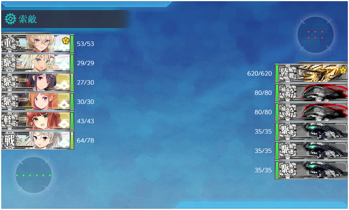 戦艦1軽空母1重巡1軽巡1駆逐2の通常艦隊編成です