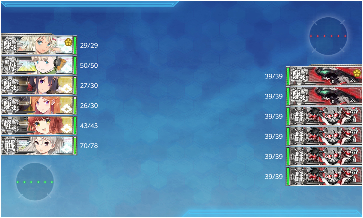 戦艦1軽空母1軽巡1駆逐3の通常艦隊編成です