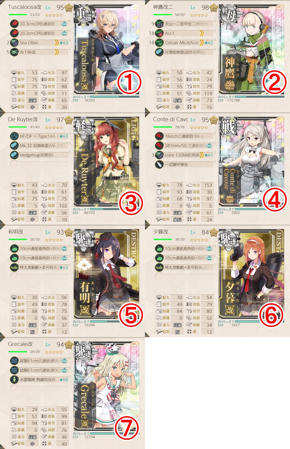 ロイテルさんは対潜装備のままでしたが、割とぎりぎりの勝利でしたので、連撃装備とかにしてたが好かったかも