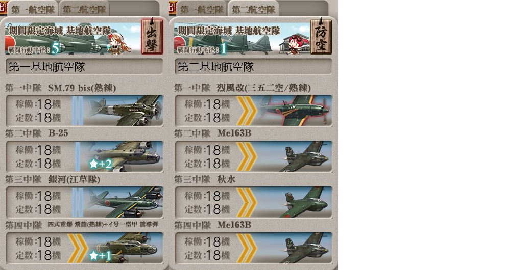/基地航空隊:2部隊使用可能、1部隊出撃可能
