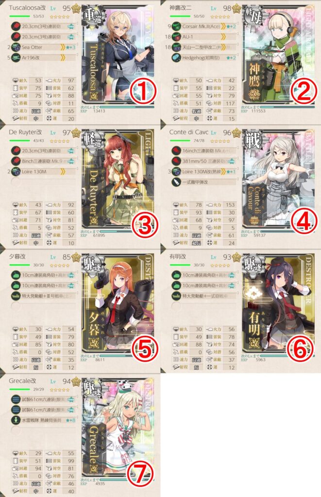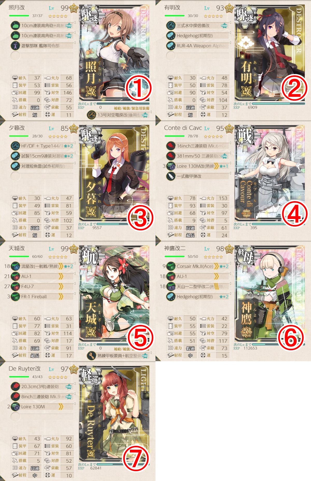 有明さん、夕暮さん、神鷹さんの対潜装備は勘違いで乗っけています