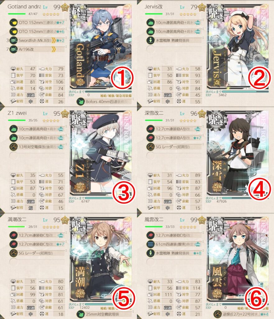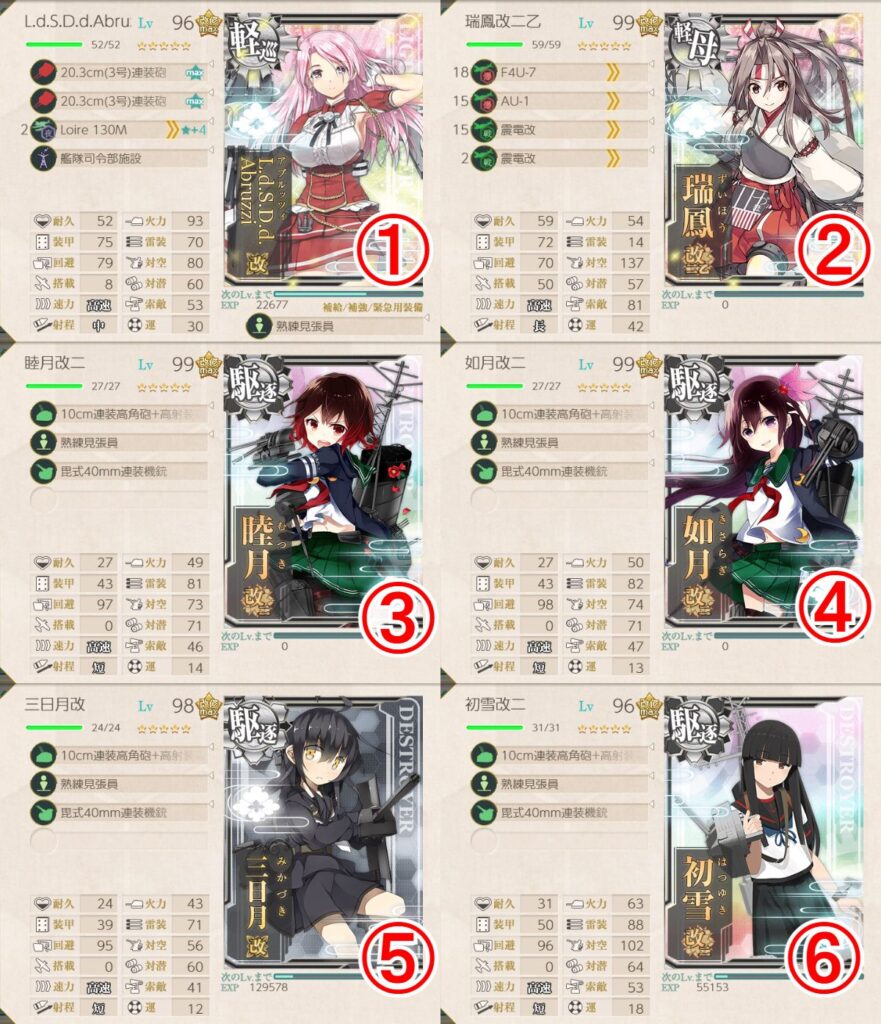 以降のE2-2、E2-3の攻略のための艦を編成しています