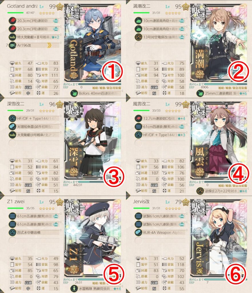 ただそちらにも書いたとおり、駆逐艦さんをおひとり重巡に変えてよかったなと思っています