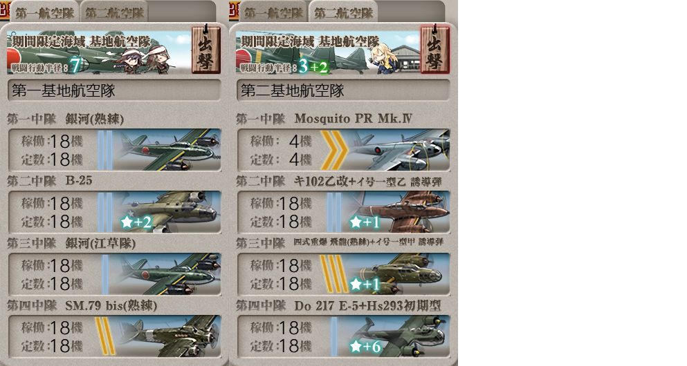 /基地航空隊:2部隊使用可能、2部隊出撃可能