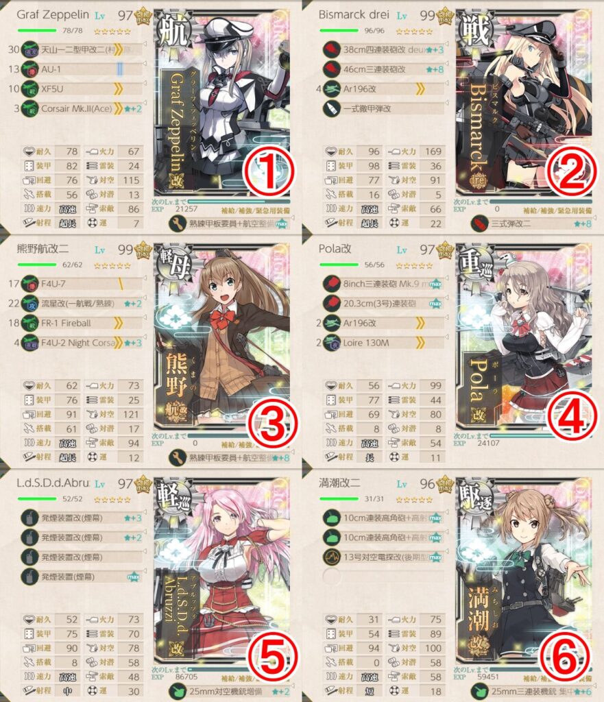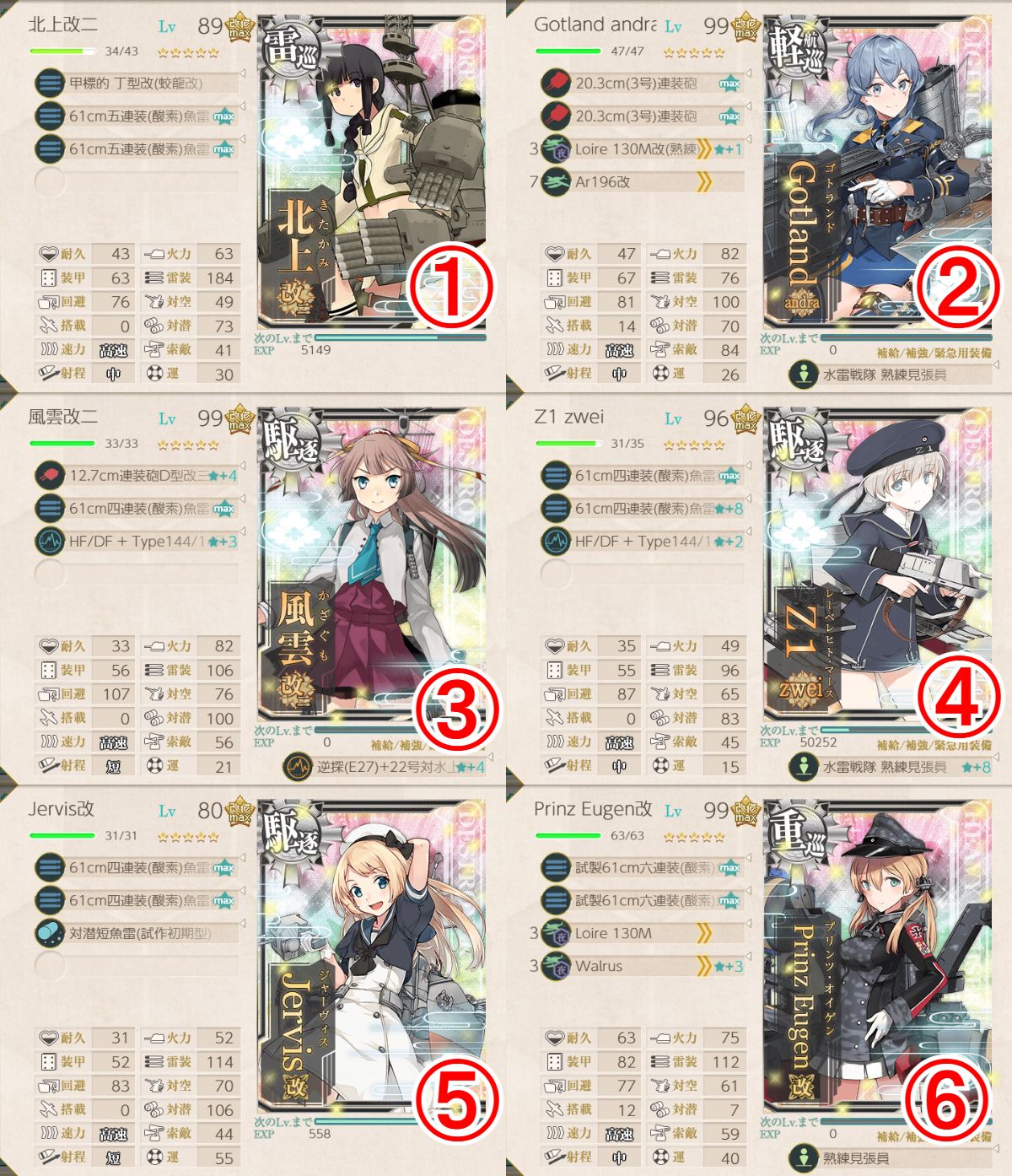 削りで先制対潜わくだったレーベ君を魚雷カットイン装備に変更しています