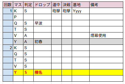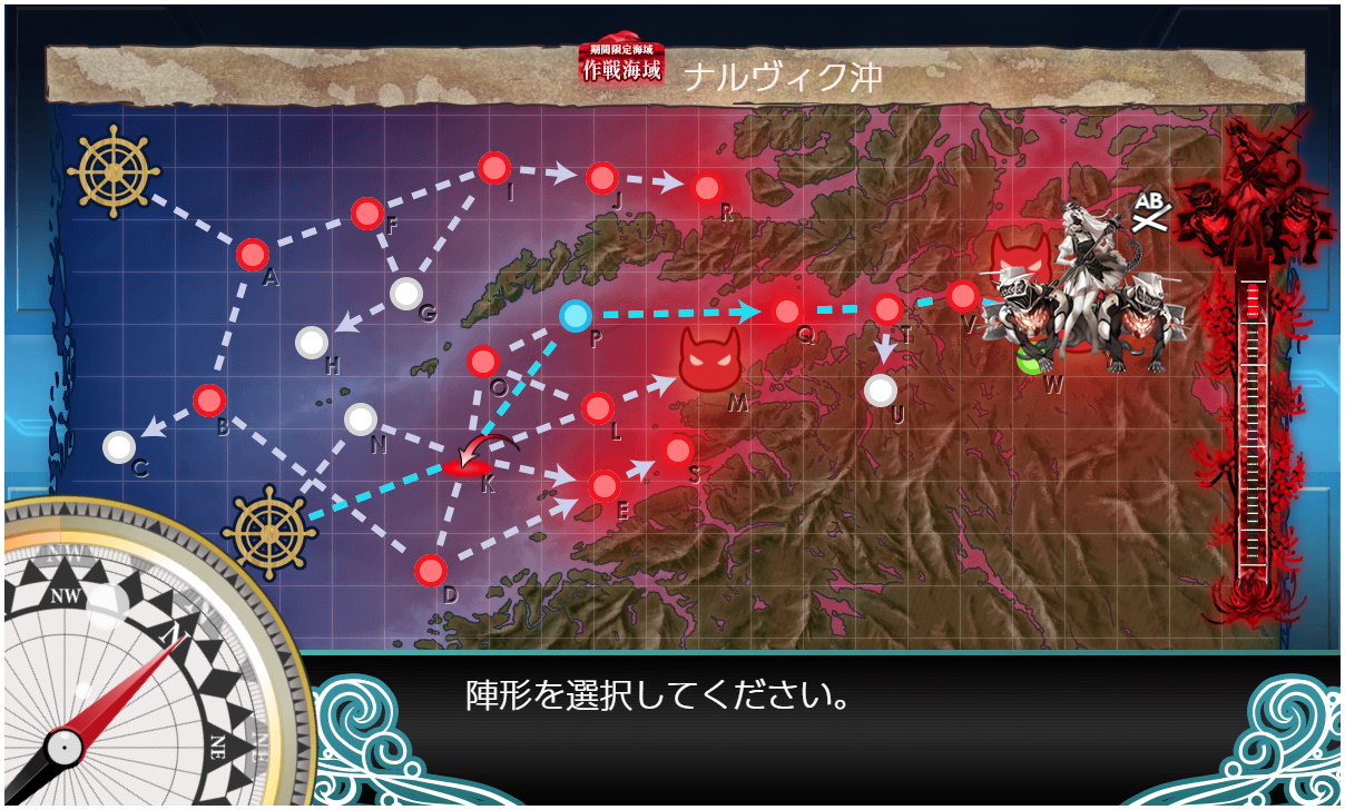 start2 → K(空襲) → P → Q(通常) → T(対潜) → V(ナ級) → Y(Boss)