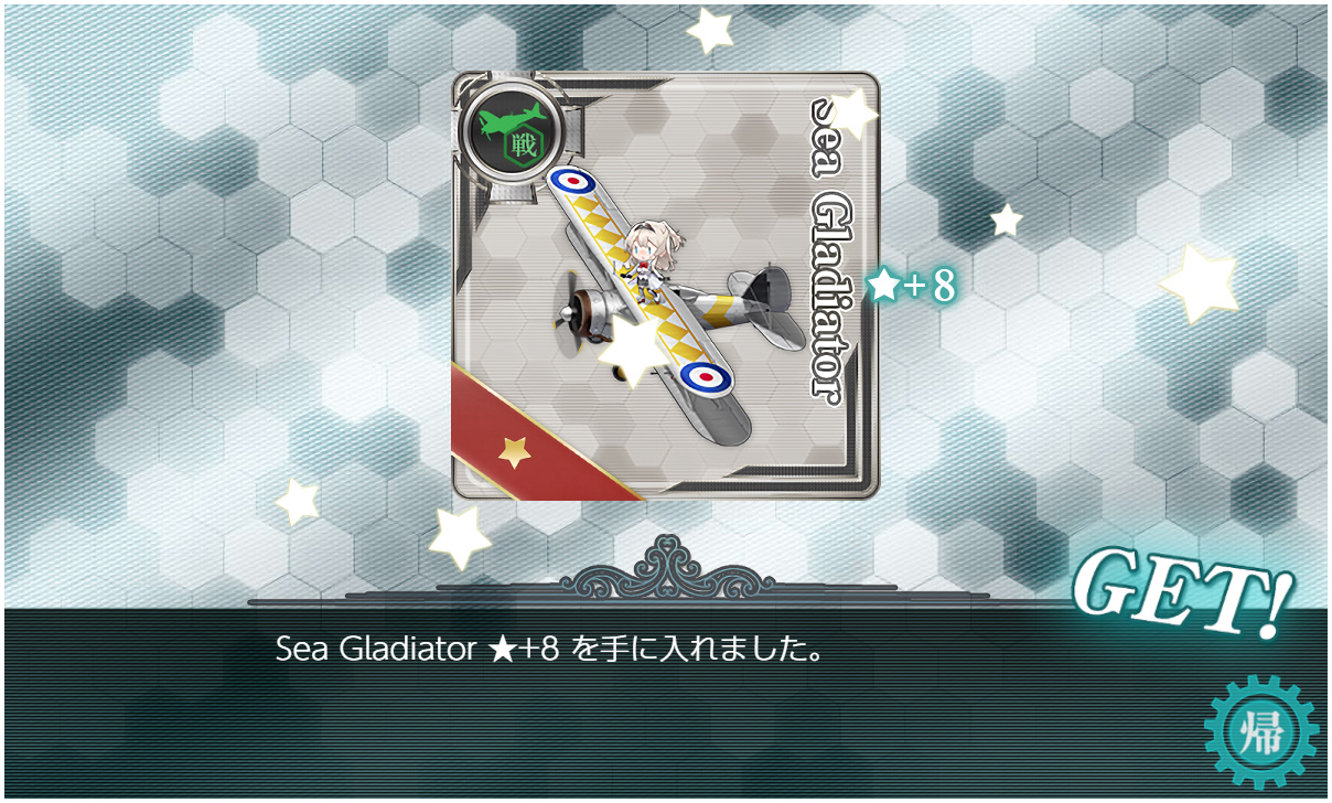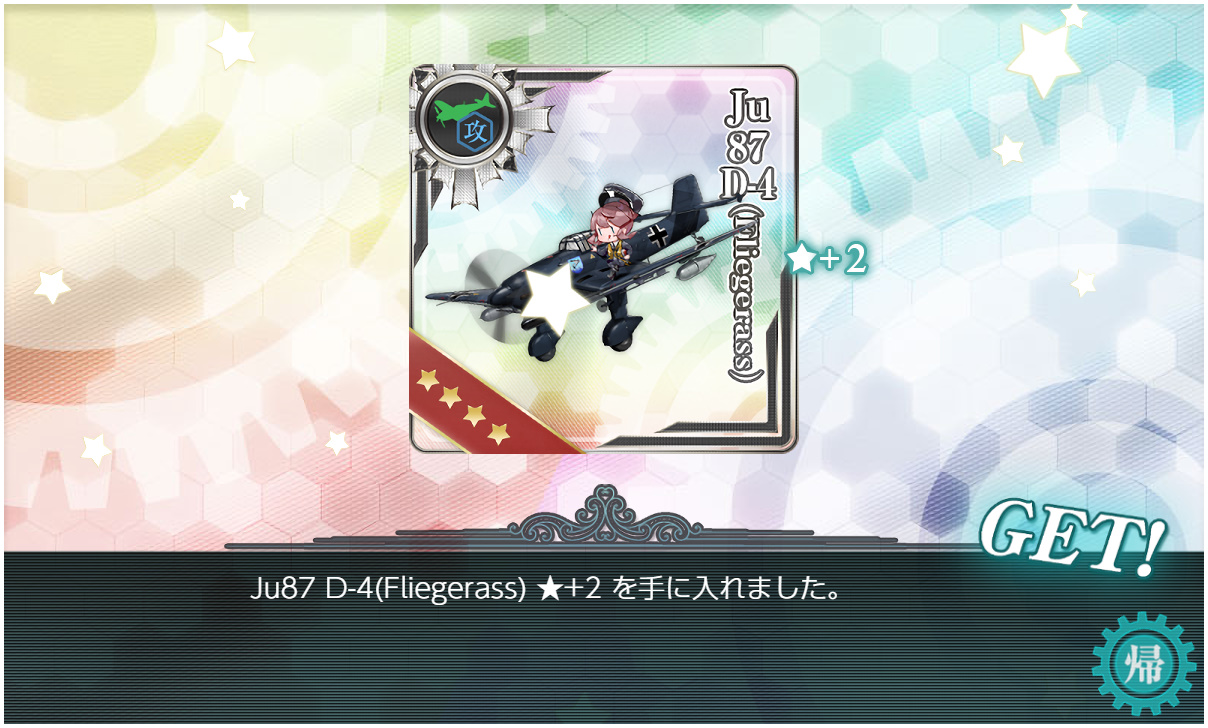 勲章×2、給料艦「間宮」、Sea Gladiator★+8、Ju87D-4(Fliegerass)★+2