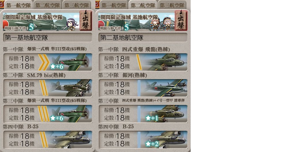 /基地航空隊:2部隊使用可能、2部隊出撃可能