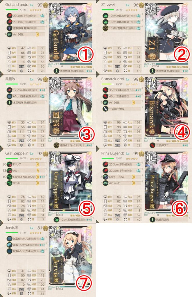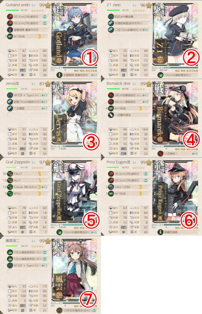 C2マスで対潜装備だったお二人を連撃やカットイン装備に変えています