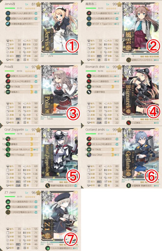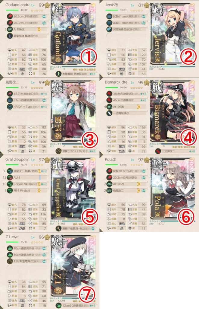 また、グラーフさんをボスマスで制空とれるよう、爆戦1に変えています