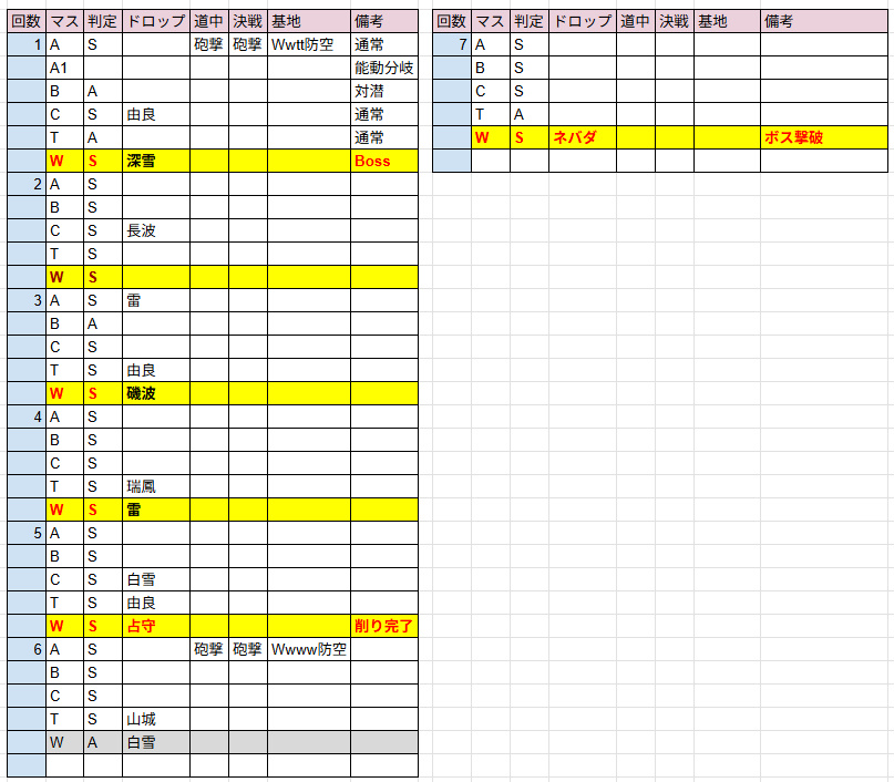 第二航空隊:削り時Tマス集中、ラストはボスマス集中