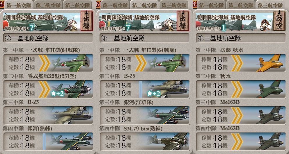 /基地航空隊:3部隊使用可能、2部隊出撃可能