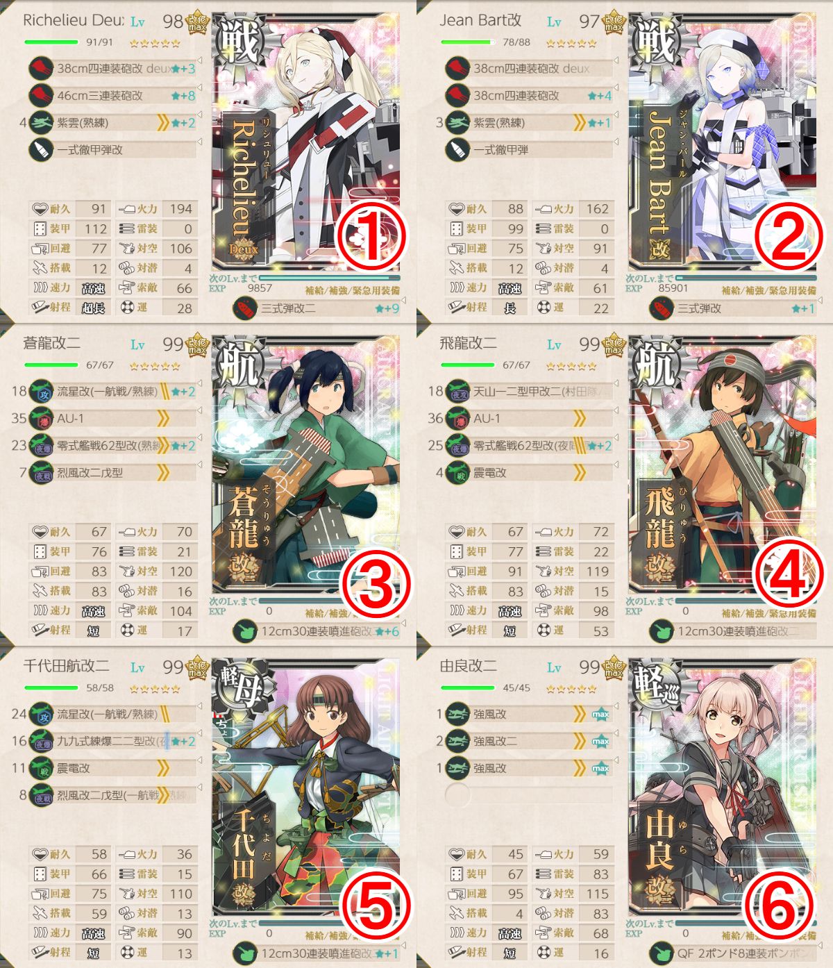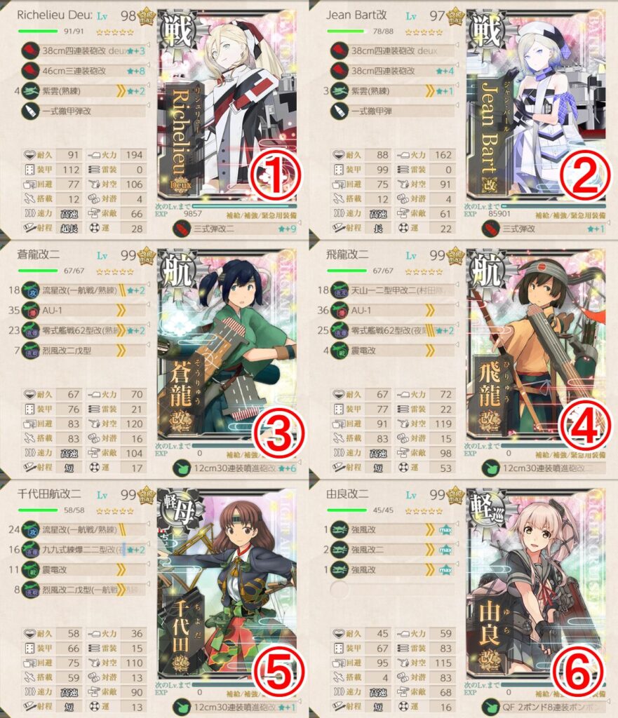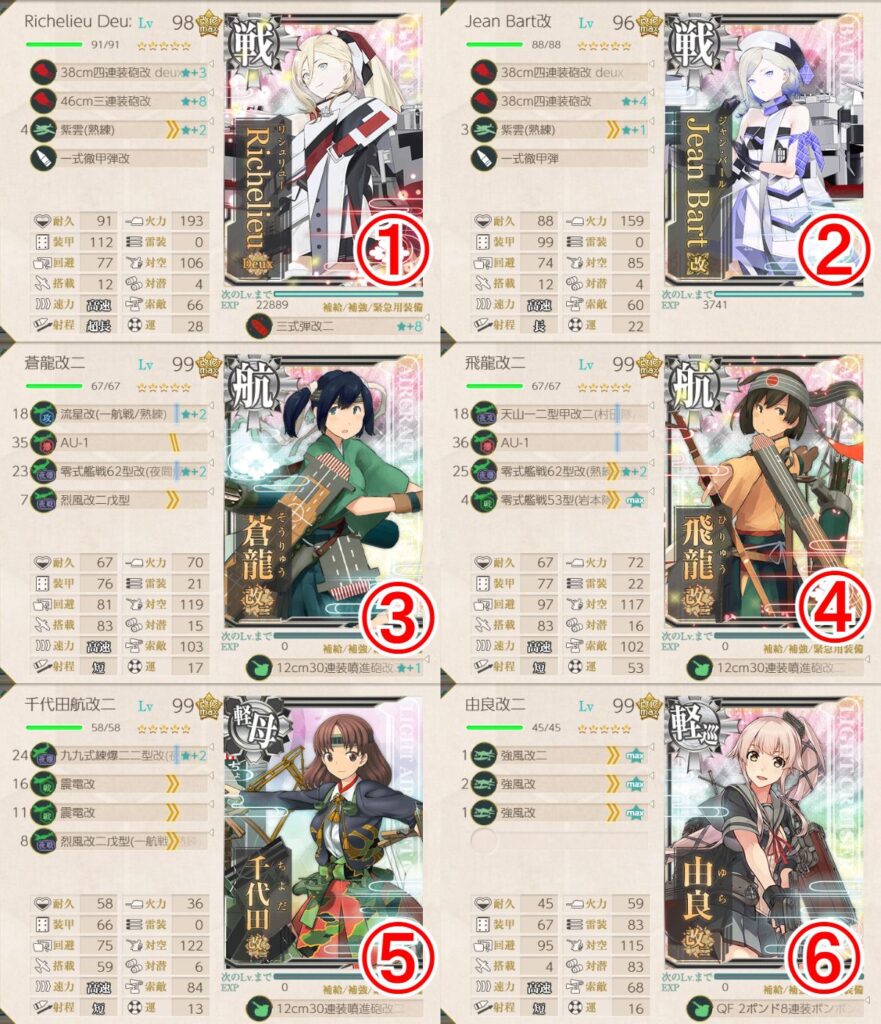 リシリューさん、ジャンバールさんの特殊砲撃のために2隻を一番艦、2番艦に編成しています