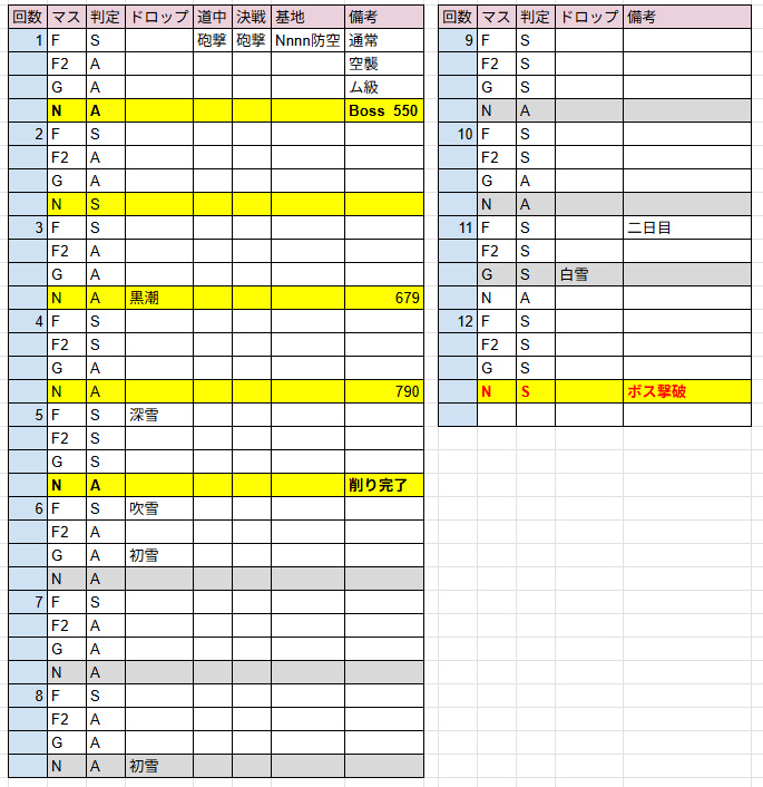 start2 → F(通常※) → F2(空襲) → G(ム級) → N(Boss)