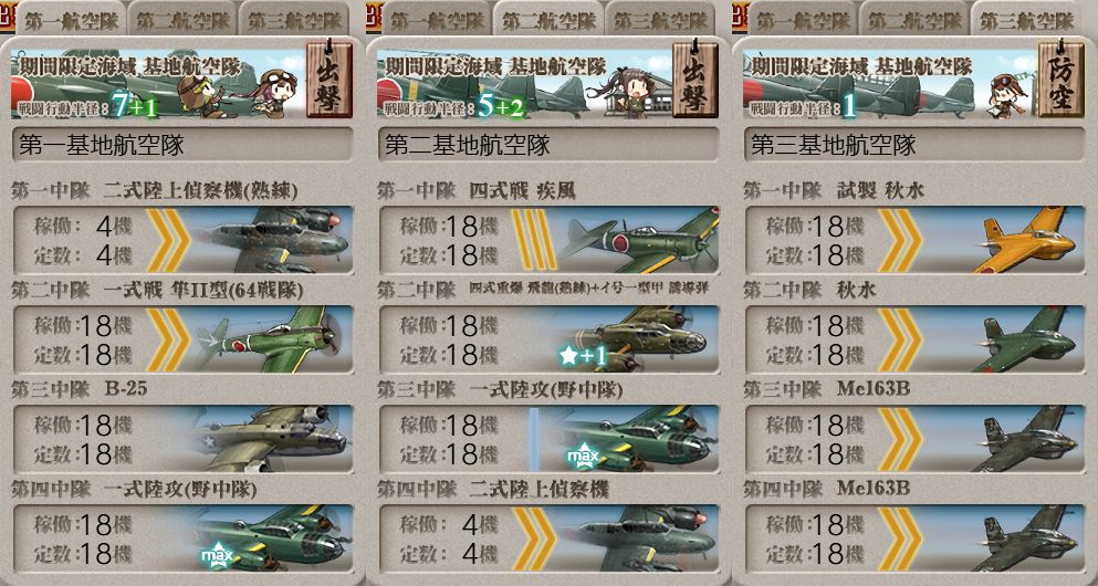 /基地航空隊:3部隊使用可能、2部隊出撃可能