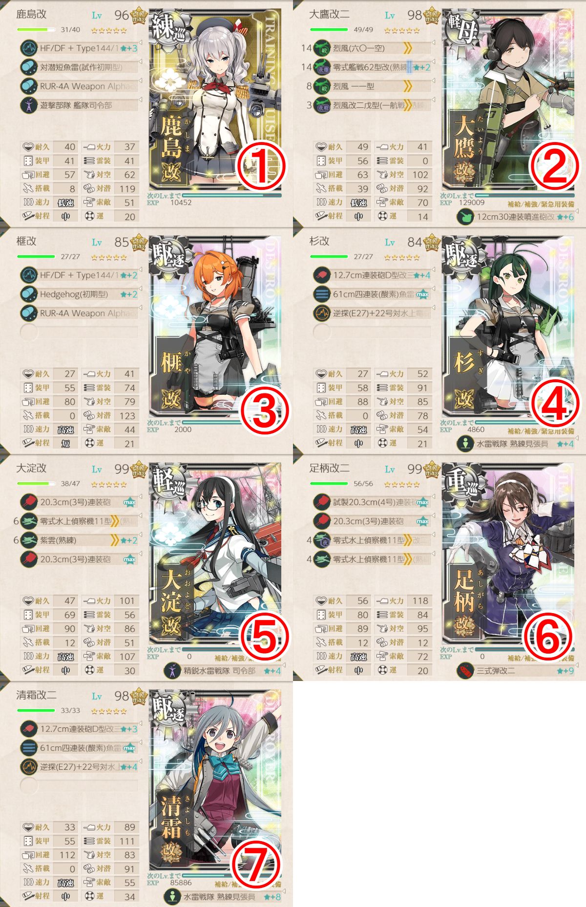 道中、ボスマスも含め警戒陣を使用するため、対潜艦を1~3番艦に当てています
