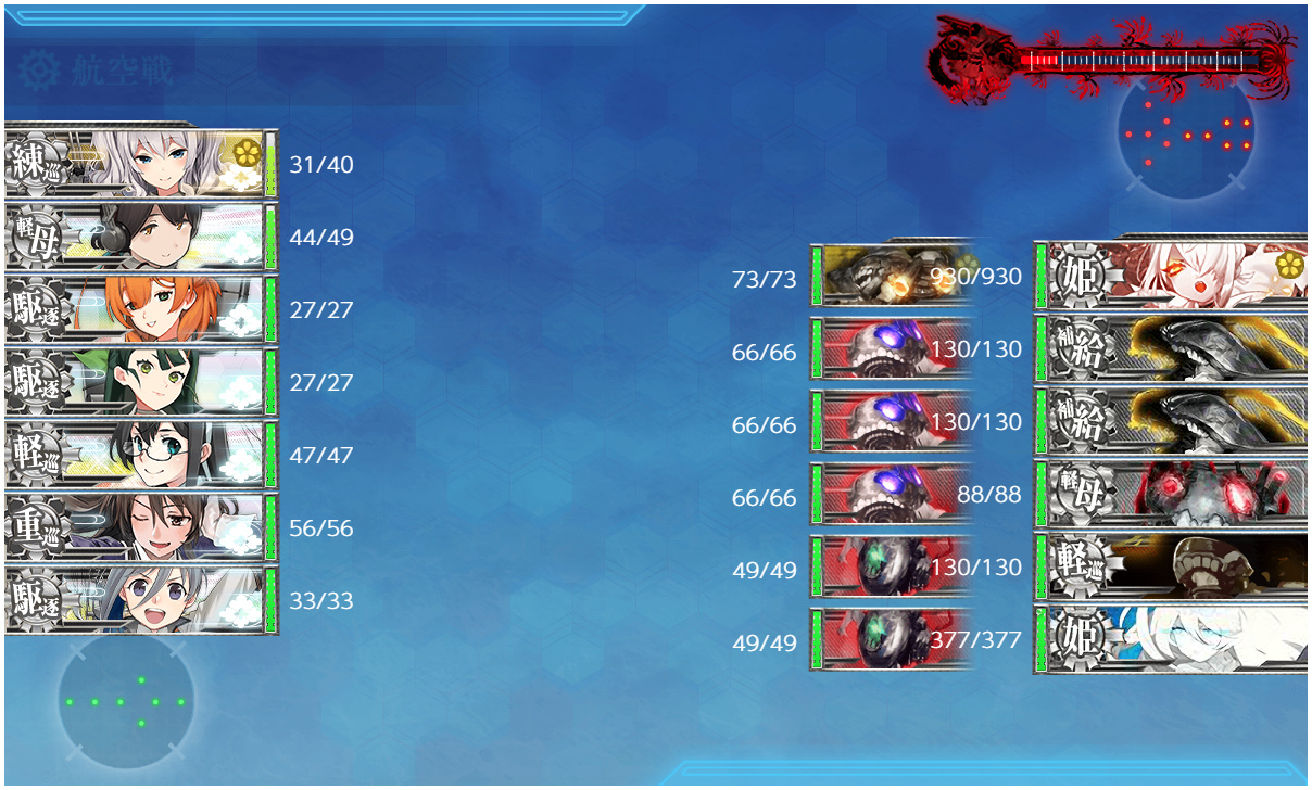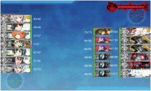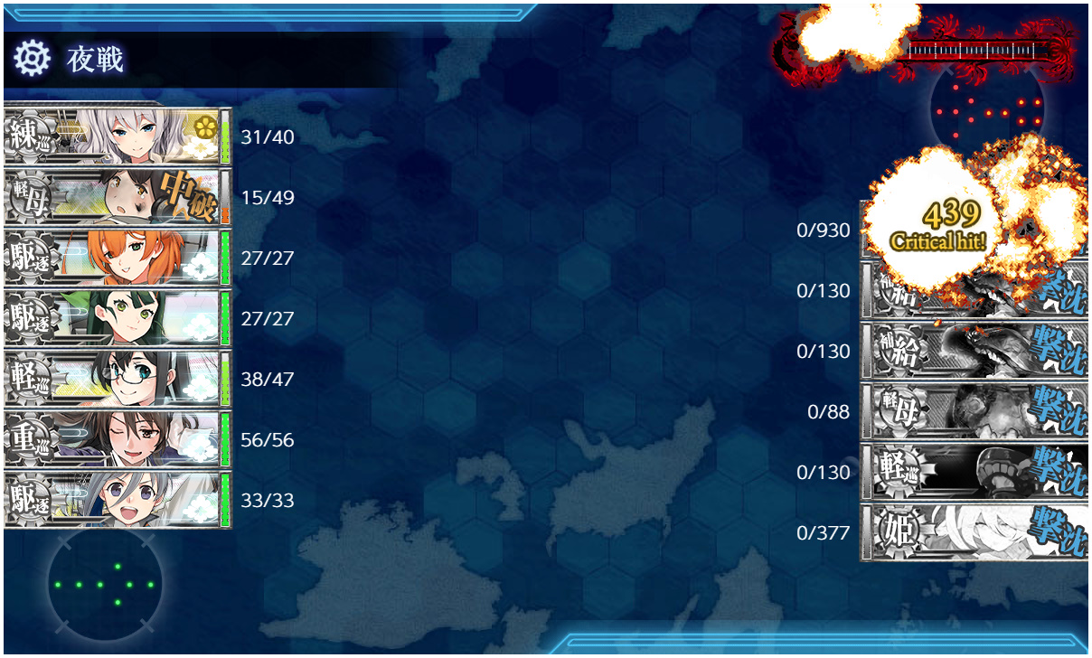杉さん、清霜さん;主魚電見カットインです。索敵を稼ぎつつ夜戦カットインをしてもらっています
