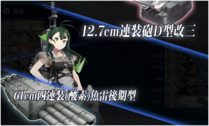 ボスマスでの潜水艦をきっちり倒すため,3種シナジーになるように装備しています