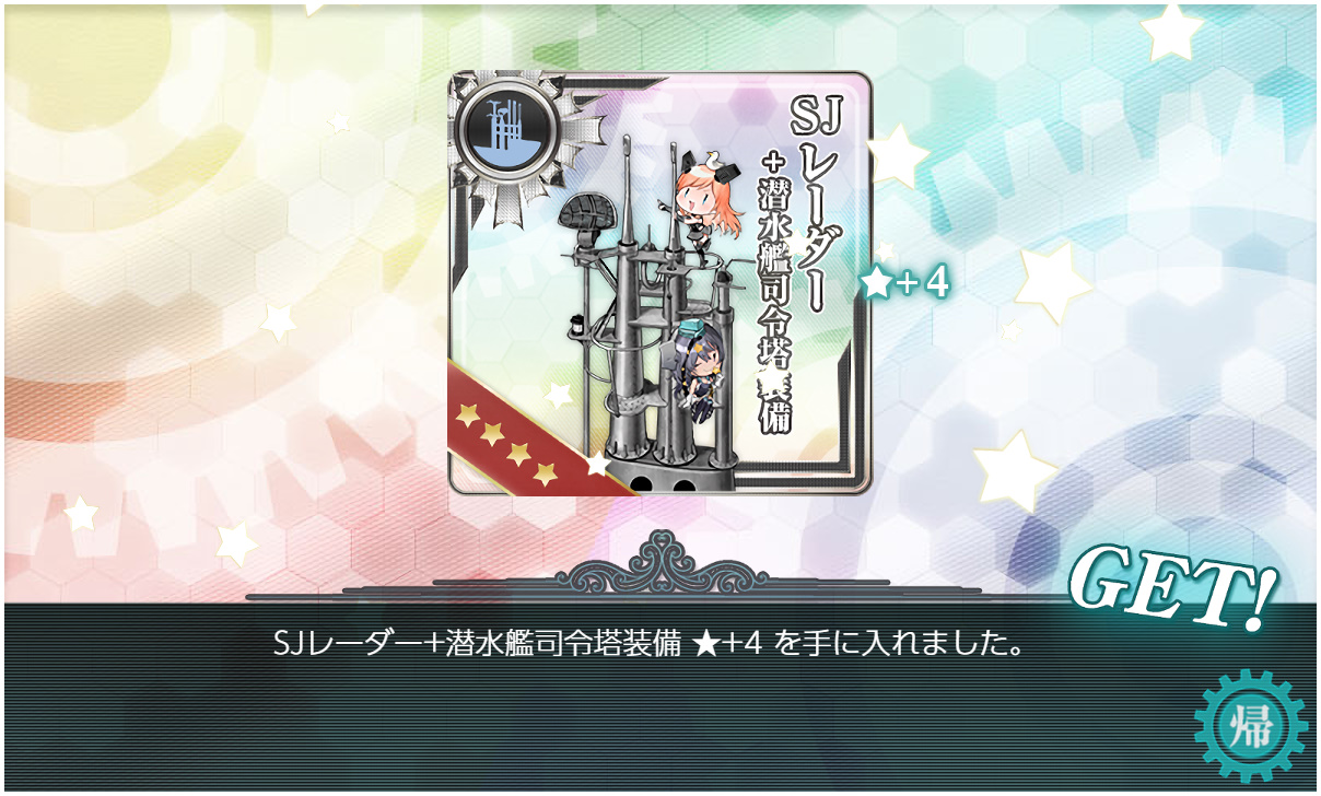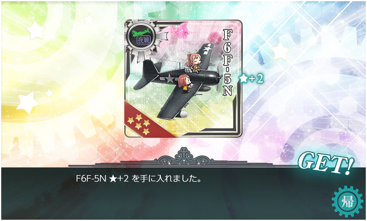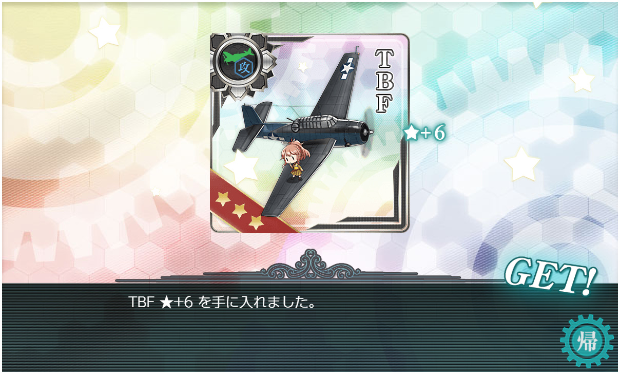 勲章×2、海色リボン、SJレーダー+潜水艦司令塔装備★+4、補強増設×1、TBF★r+6、F6F-5N☆+2