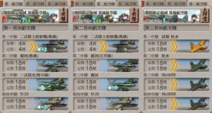 道中は拮抗、ボスマスで基地含め劣勢になるように制空値を調整して乗っけています(夜偵が飛ぶように)