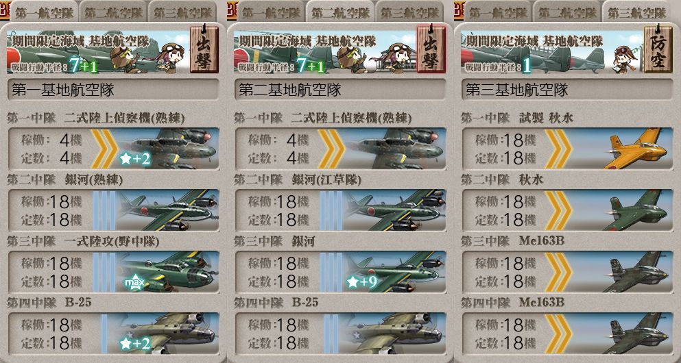 /基地航空隊:3部隊使用可能、2部隊出撃可能