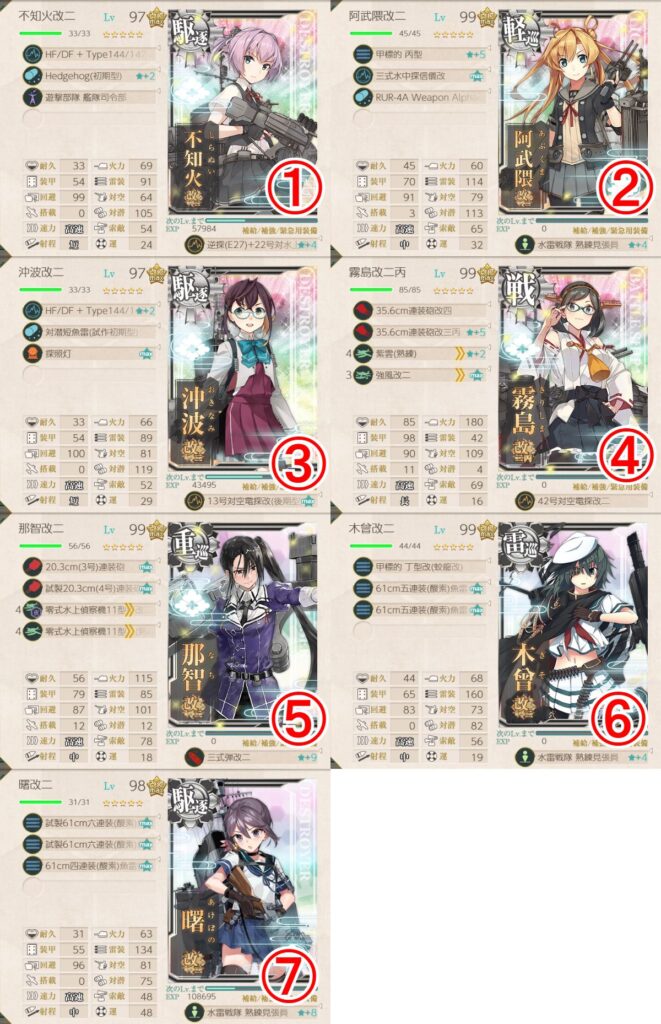 不知火さん:先制対潜装備です。遊撃部隊司令部施設を使用しています