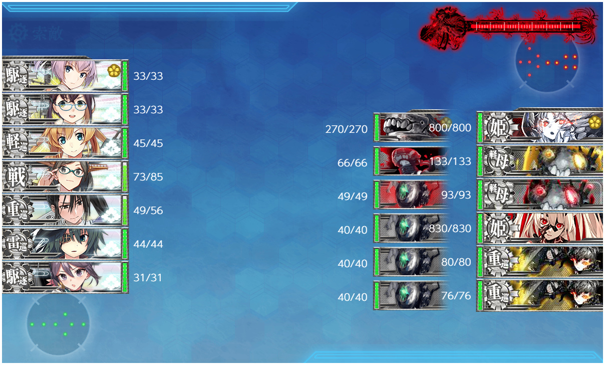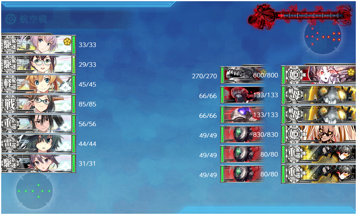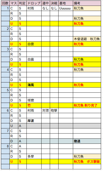 さすがにボスさんが動く回数が増え、↓3隻の火力艦が中大破にさせられやすかったため、