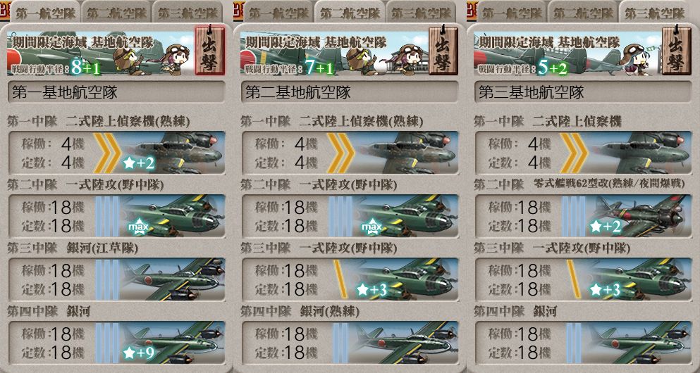 /基地航空隊:3部隊使用可能、3部隊出撃可能