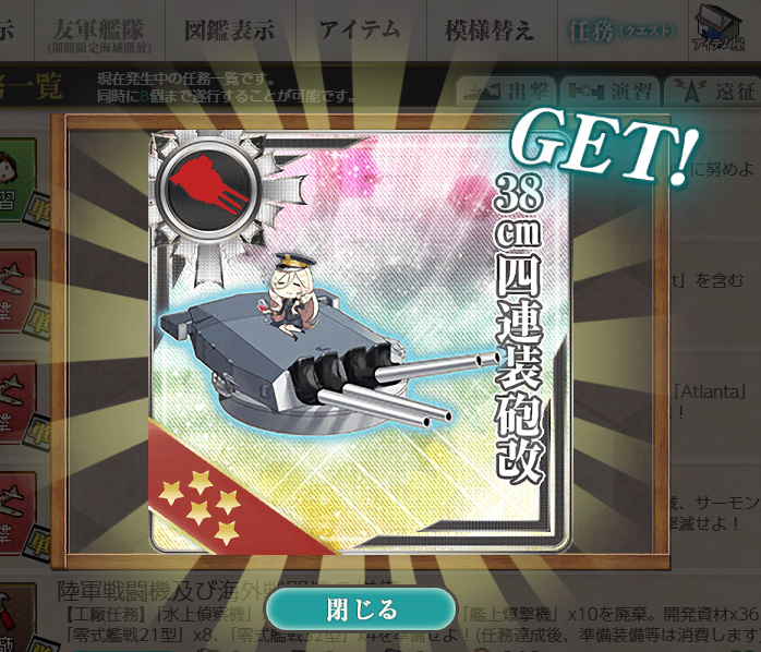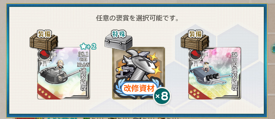 - 38.1cm Mk.Ⅰ/N 連装砲改 or 改修資材×8 or 38cm四連装砲改