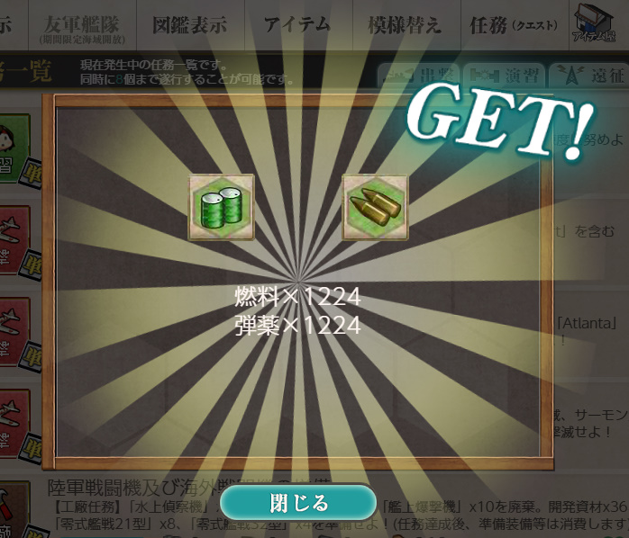 - 燃料×1224、弾薬×1224