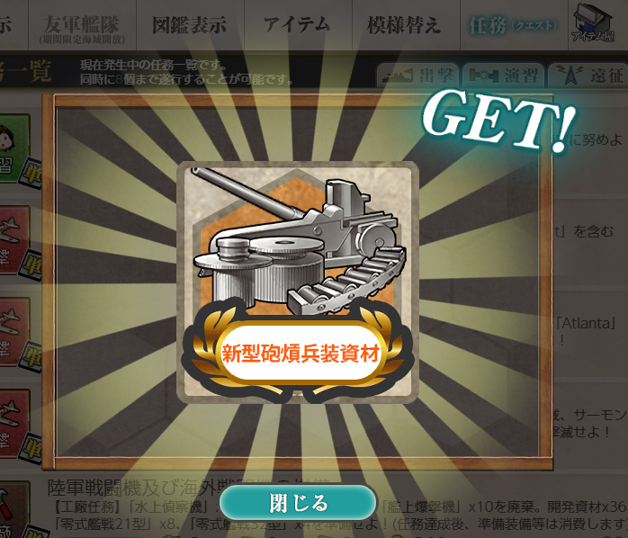 新型砲熕兵装資材と四連装砲改(フランス主砲改)をいただきました