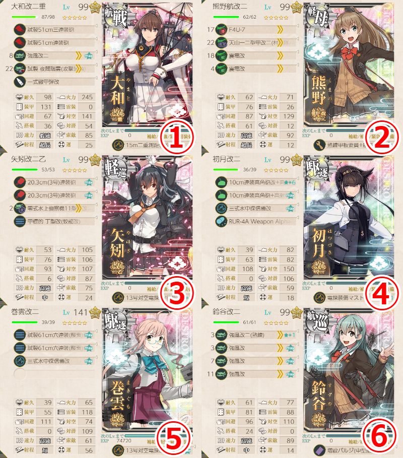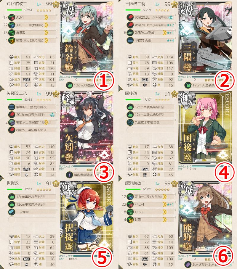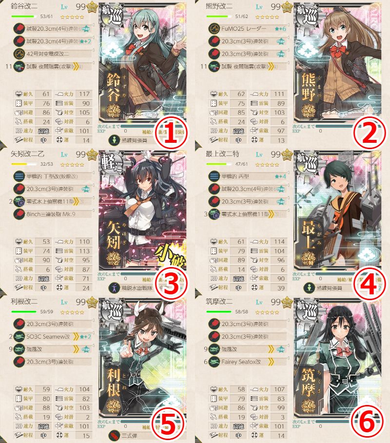 鈴谷、衣笠、熊野、大淀、球磨、鹿島、矢矧改二/乙、酒匂、シェフィールド、アトランタ