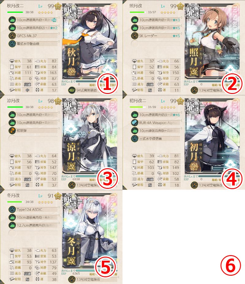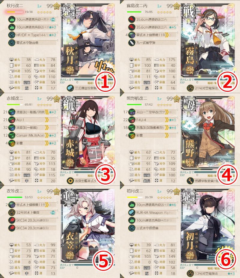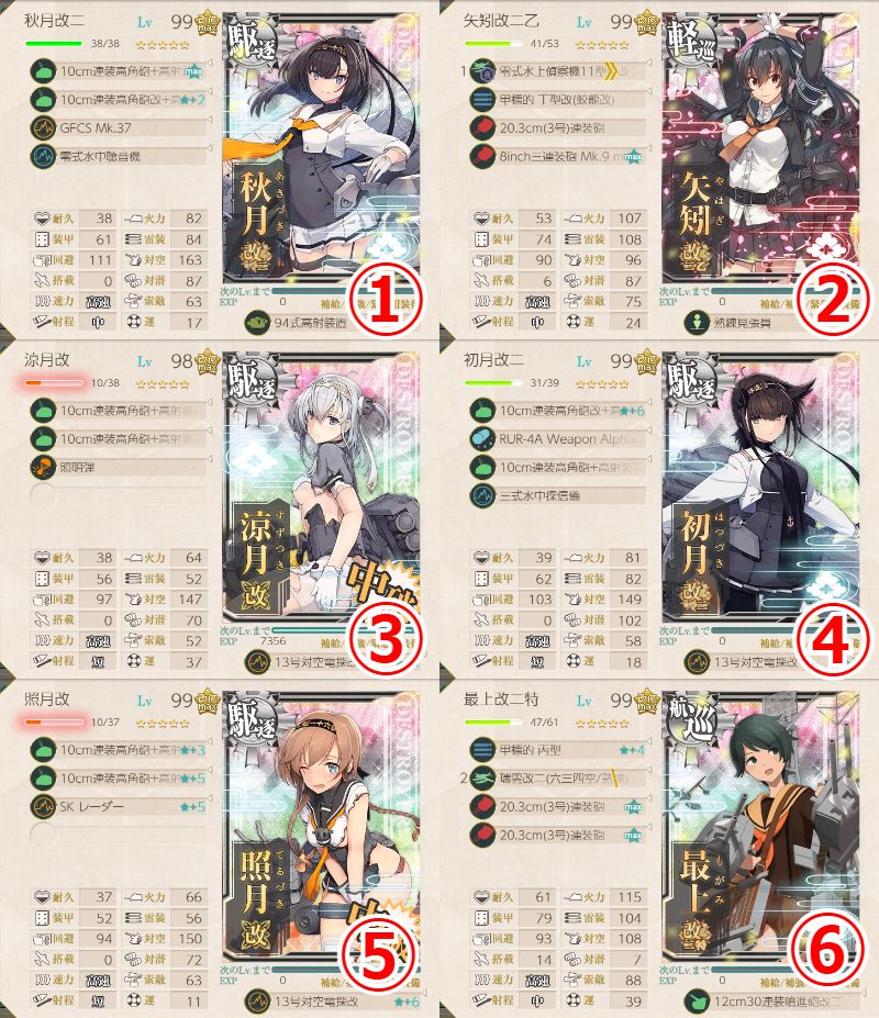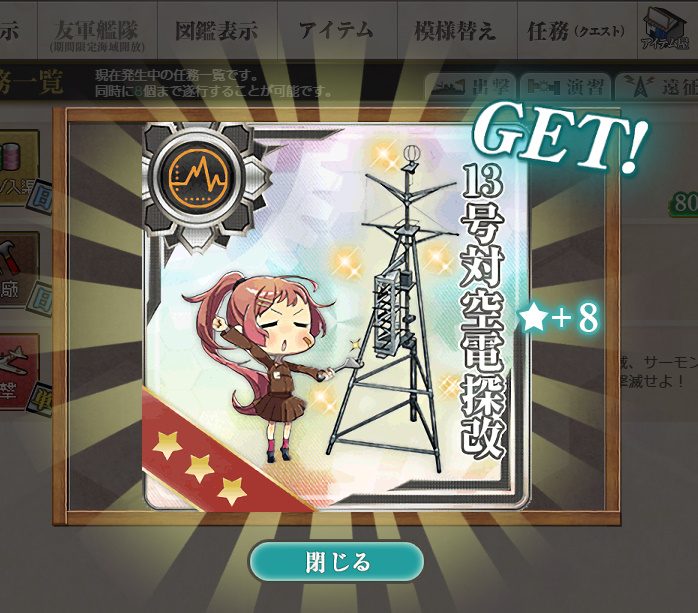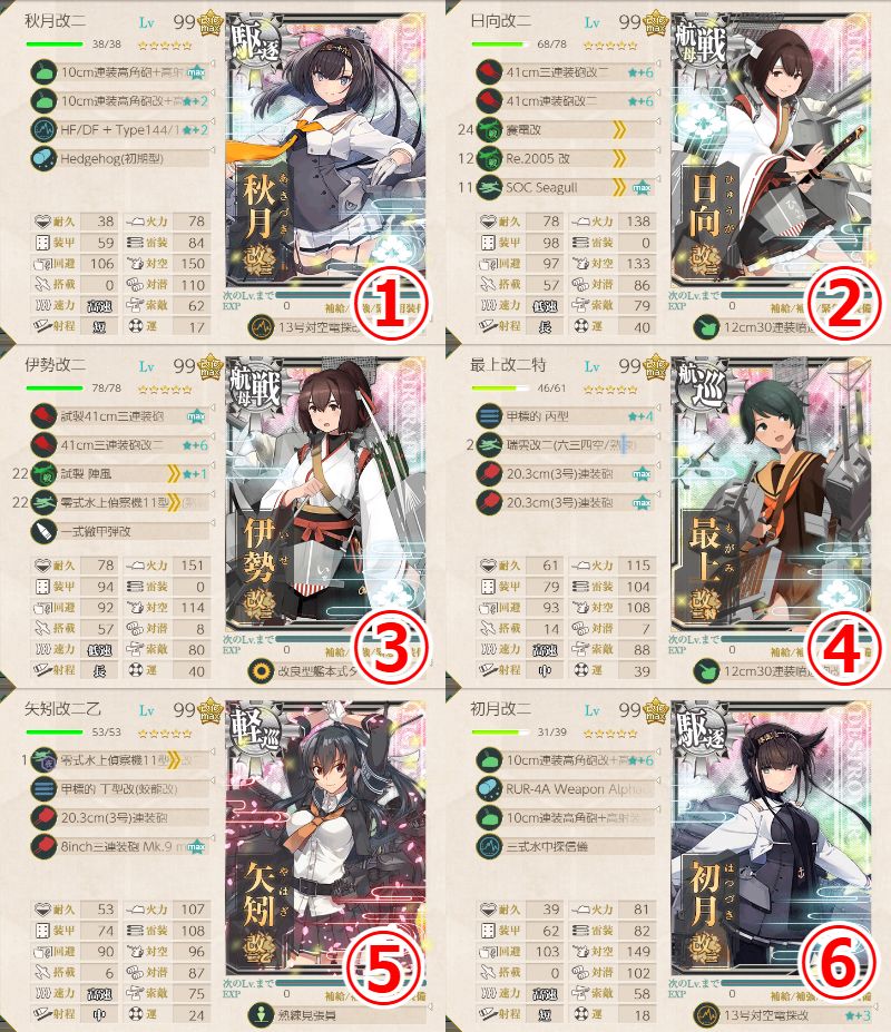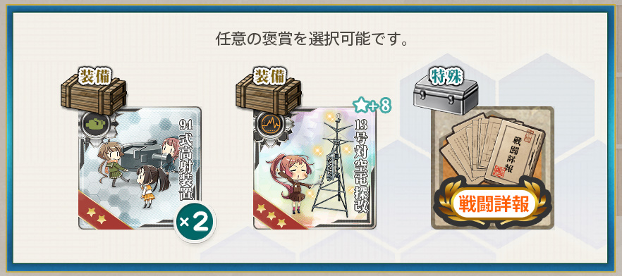 - 94式高射装置×2 or 13号対空電探改★+8 or 戦闘詳報×1