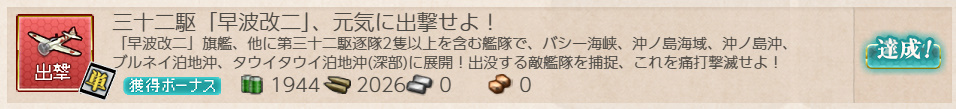 艦これ 任務 「三十二駆「早波改二」、元気に出撃せよ!」【出撃/単発】
