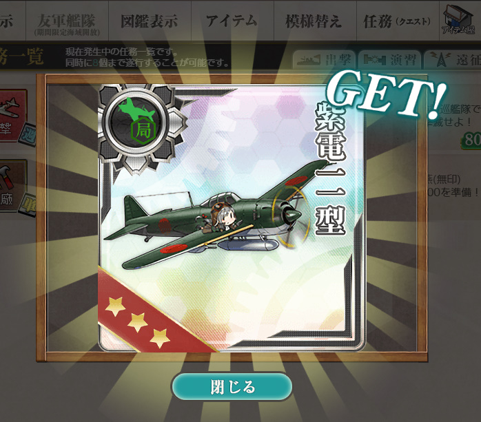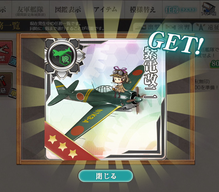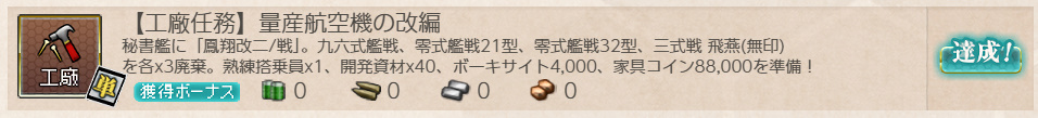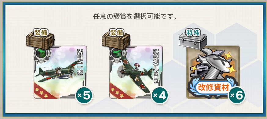 - 紫電一一型×5 or 試製烈風 後期型×4 or 改修資材×6